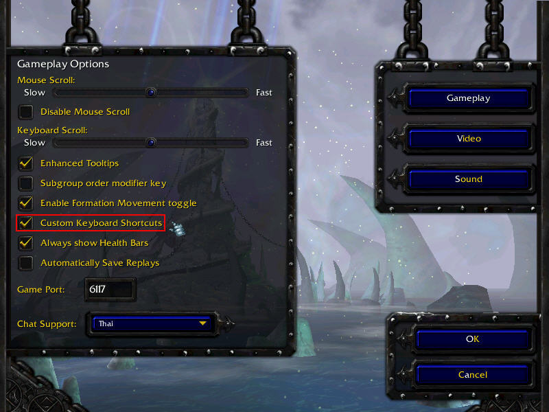 ** เพิ่มเติม ถ้าเป็นเซิพ TCP เมื่อเข้าห้องแชทให้สังเกตมุมบนด้านซ้าย คลิกที่ Option ==> Seting ทำเครื่องหมายถูกที่ Use server to create game แล้วคลิก OK